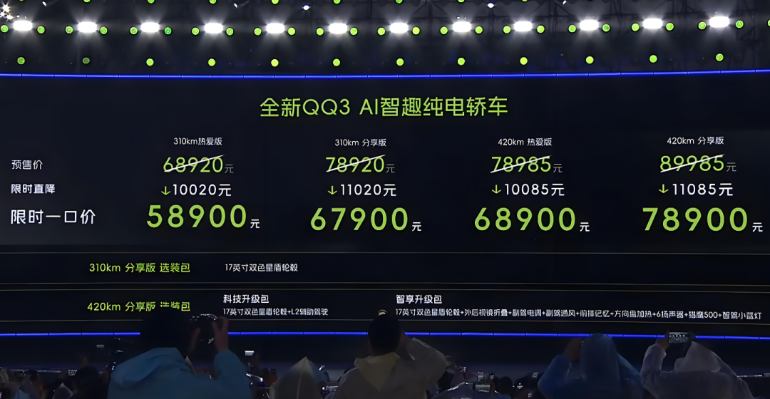 整体来看,这次全新QQ3的回归不只是卖一波“情怀”,更是拿出了实打实的诚意。不到6万元的价格就能拿下一辆颜值在线、空间能打、配置丰富的纯电小车,难怪预售就能“爆单”。