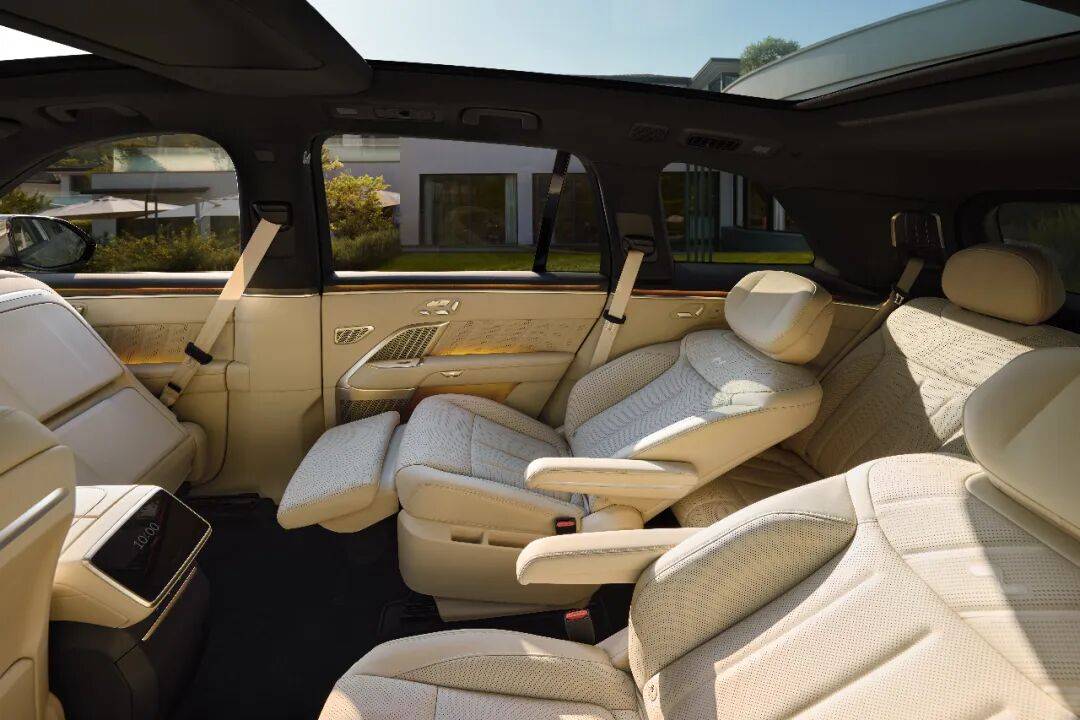 至于舒适性,新车同样保持了高水准。其中,第二排右侧的零重力座椅仍是“VIP席”;第三排座椅靠背支持38°电动调节,杯架、充电口也一应俱全。除8.86L车载冷暖箱、256色氛围灯和23扬音响系统外,真木饰板与钛金柔光饰条的质感亦符合其品牌旗舰定位。